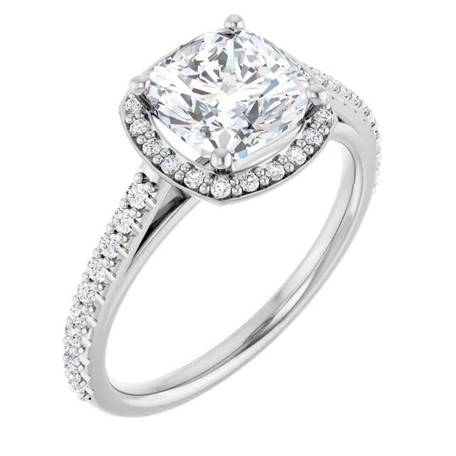 14K White Gold Cushion Halo-Style Engagement Ring Mounting